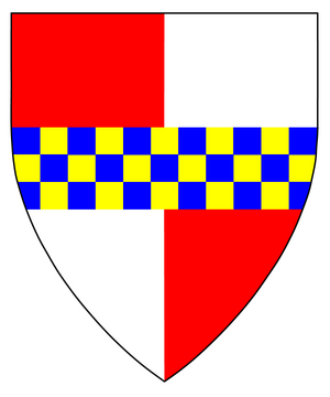 Unregistered: Quarterly gules and argent, a fess chequy Or and azure |
