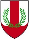 ![]() Argent, a pale and base echancree at the points of juncture gules, overall in chief a laurel wreath vert. | ||||
