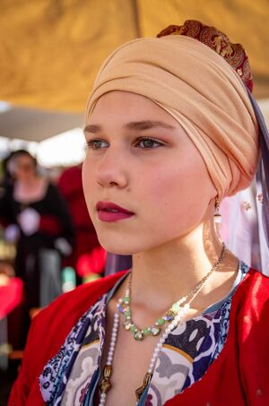 Nasira is the daughter of Kniaginia (Countess) Katalena Ivaniaia zhena Shishova, OP and Count Ivan Shishov, KSCA of Two Tygers Keep.