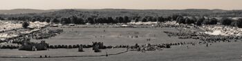 The war, also called simply Pennsic, is the social event of the year for the SCA, especially east of the Rocky Mountains, and everyone who is able attends, to the number of 10,000 in recent years. The war is so important that in the Middle we differentiate not between Summer and Winter reigns but between War and Winter reigns. To reign during the period of the War and therefore lead the kingdom in warfare, to be ennobled at the Great Court of all the Laurel Kingdoms, to be chosen as an Unbelted, Rapier or Archery Champion for the duration of the War, and most especially to be knighted on the Pennsic battlefield, is accounted a very great honor in the Middle.