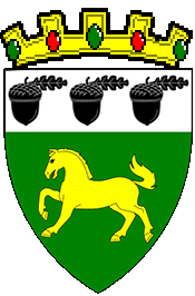 ![]() Vert, a horse passant Or and on a chief argent three acorns, each acorn with a maintained leaf issuant to sinister fesswise sable. |