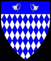 ![]() Lozengy argent and azure, on a chief azure two columbines addorsed argent. |