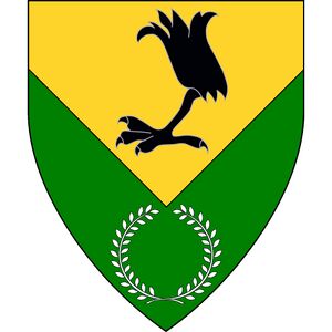 - Arms/Device - Per chevron inverted Or and vert, an eagle's leg erased sable and a laurel wreath argent.
