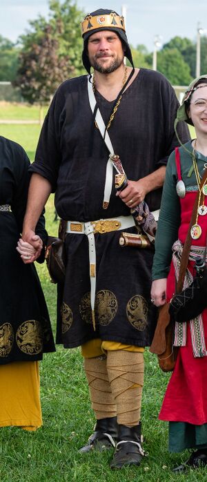 Baron Timothy at Harvest Days 2023, Photo by Phillip the Pilgrim. Baroness Elisabetta (left) and Forester | ||||||||||