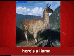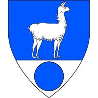 Azure, a llama statant contourny and on a base argent a hurt. |