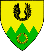 - Arms/Device - Or, two wings conjoined sable and on a base indented of three points vert a laurel wreath Or.